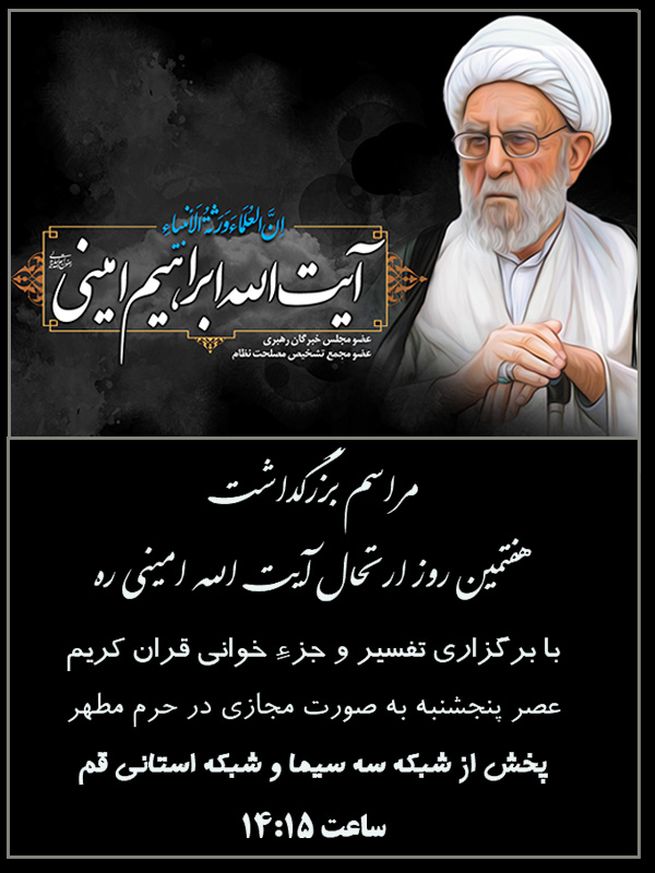 مراسم بزرگداشت هفتمین روز ارتحال آیت الله امینی(ره) با برگزاری تفسیر و جزء خوانی قران کریم عصر پنجشنبه به صورت مجازی در حرم مطهر برگزار میشود.